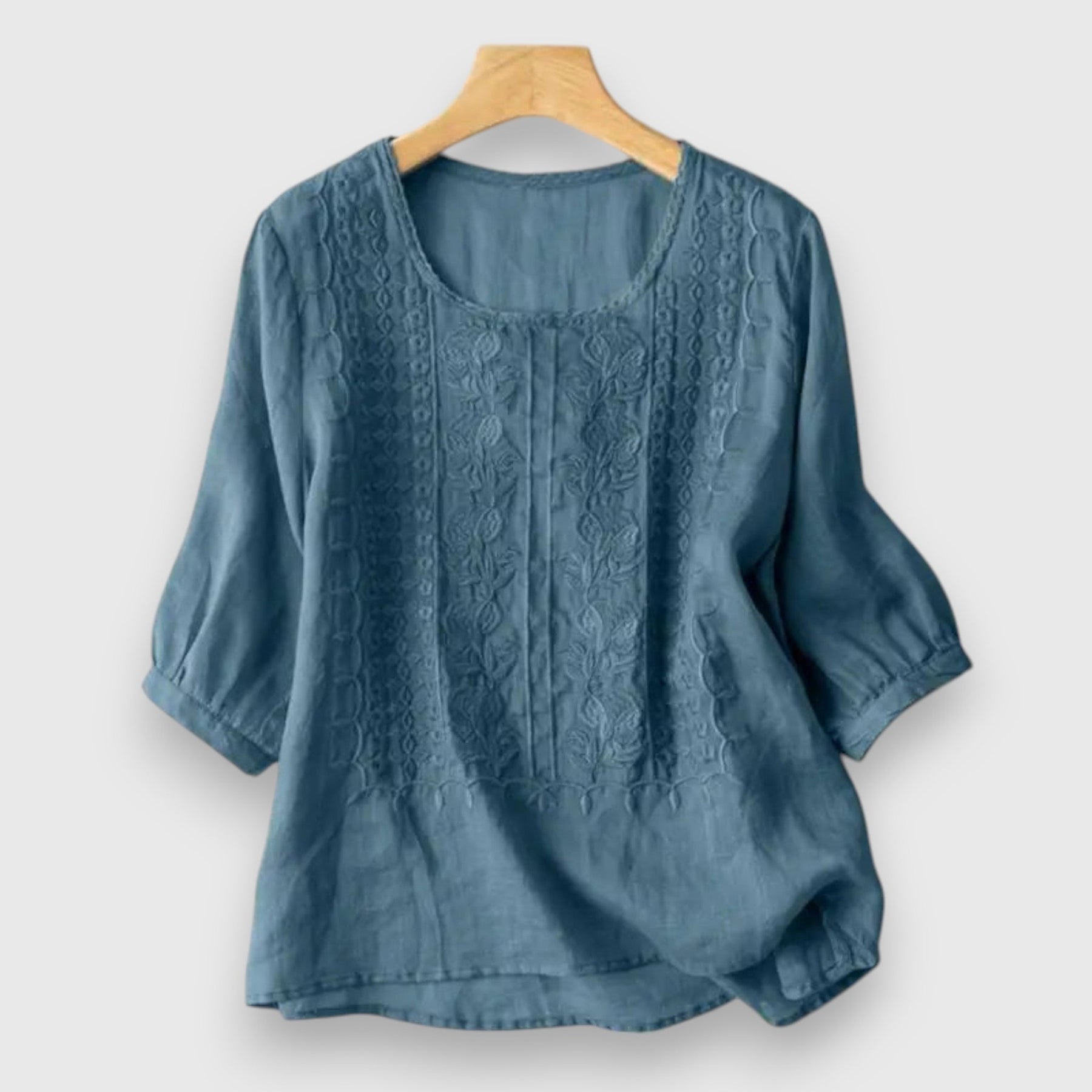 The Clara Boho Blouse combines elegant lightness with a touch of vintage romance. Delicate embroidery and an airy fit make it the perfect piece for stylish everyday looks with boho flair.